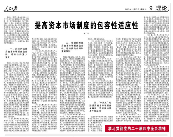 12月5日,人民日报刊登了证监会主席吴清的署名文章。主题很宏大:提高资本市场制度的包容性、适应性。