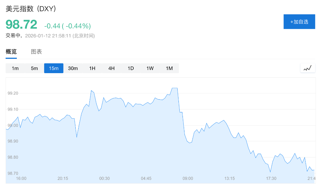 美国司法部对美联储主席鲍威尔启动调查,引发市场对央行独立性的严重担忧,导致“抛售美国”交易情绪急剧升温。美股指期货、美债与美元同步下跌,美元指数创近三周最大跌幅。避险资金疯狂涌入黄金,现货金价一度飙涨2.4%突破4620美元/盎司,白银亦暴涨7%创新高。机构普遍警告,此事件加剧了美国货币政策的不确定性,可能推动资金持续从美元资产外流。