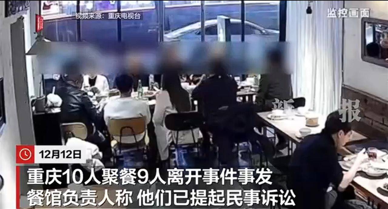 12月12日,“重庆10人聚餐9人离开事件”事发餐馆负责人称,已提起民事诉讼。