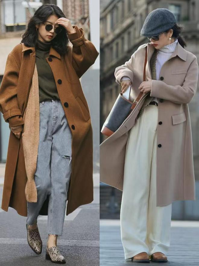 正常来说,我们选择的大衣外套只要做到不花哨,就能降低出错率,选择纯色系,浅色系,低饱和度的大衣来穿搭,更容易提升你的气质。